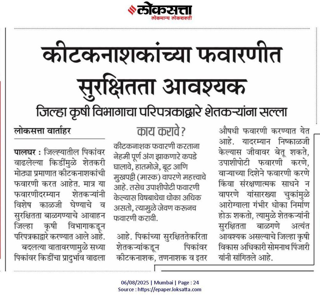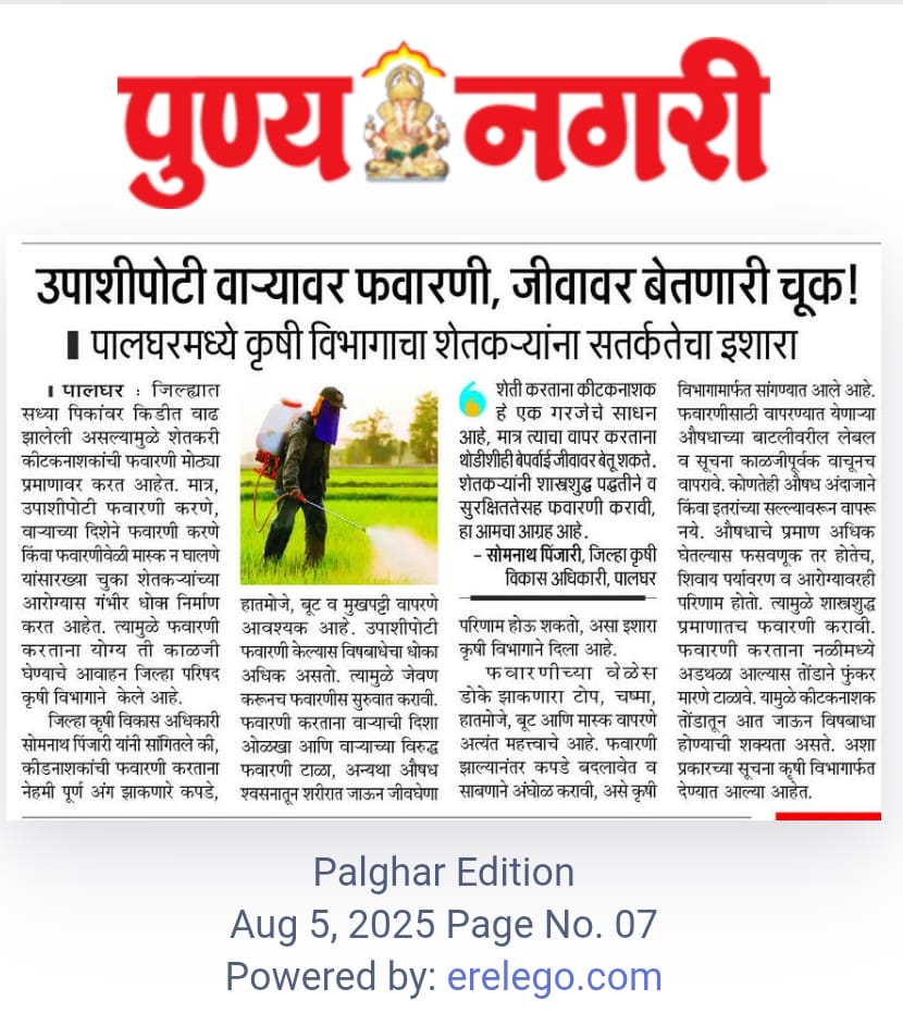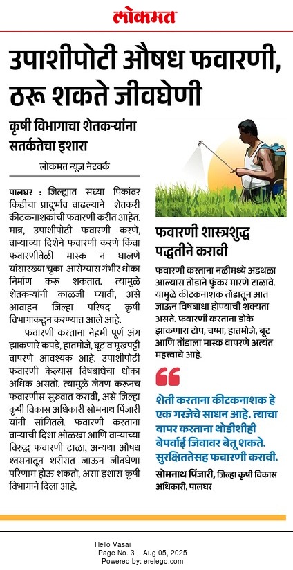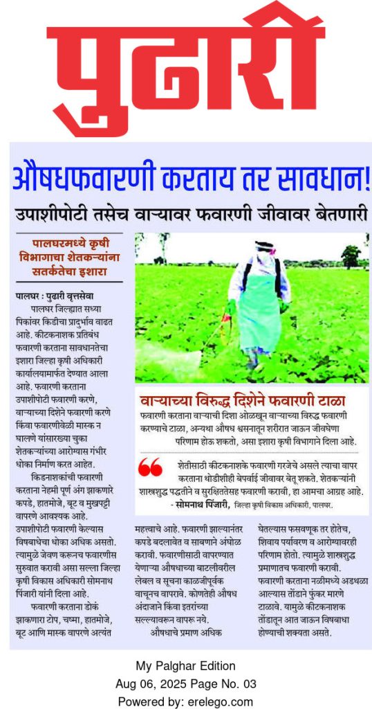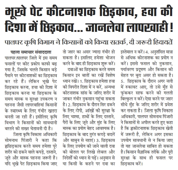 उपाशीपोटी वाऱ्यावर फवारणी, जीवावर बेत होणारी! पालघरमध्ये कृषी विभागाचा शेतकऱ्यांना सतर्कतेचा इशारा.